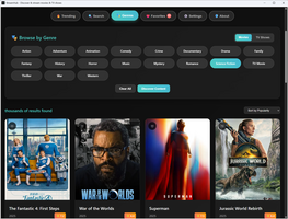 StreamHub is a powerful yet simple content discovery application that helps you explore the vast world of movies and television. Powered by The Movie Database (TMDB) API, it provides instant access to comprehensive information about millions of titles, all wrapped in a clean, intuitive interface running natively on Windows.