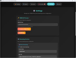 Privacy First: All your settings and favorites are stored locally on your computer - no data is sent to external servers (except API calls to TMDB for content information).
