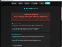 Legal Notice: StreamHub is a content discovery tool that does not host or distribute copyrighted material. Users are responsible for ensuring their use complies with all applicable laws. Any streaming services you choose to configure are third-party services operated independently.